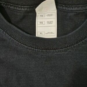 XL black t shirt with graphic print on front and back.