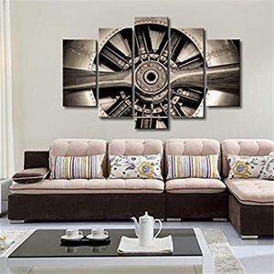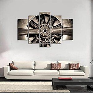 Xlarge 5 Panels Vintage Canvas Art Wall Decor Turbine Plane Propeller, 40"x60"
