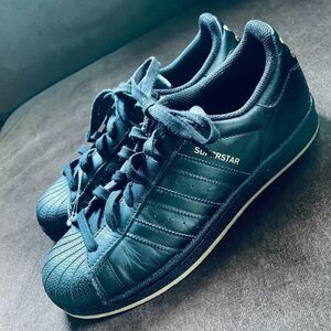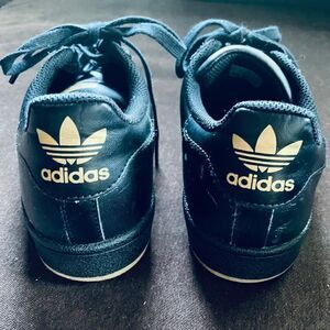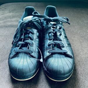 Xlnt Rare Adidas Superstar Black leather Gum Rubber soles womens 8 mens 7 40 EUR