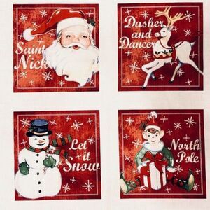 Xmas Quilt Panel Home for the Holidays Santa Elf Snowman Reindeer Sweet Treat
