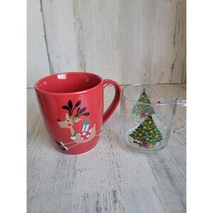 Xmas mugs reindeer clear tree set home kitchen accessories