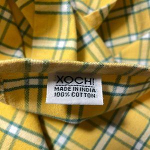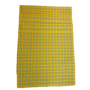 Xochi Placemats 18x18 Square Plaid Cotton Yellow Green Made in India Set of 6