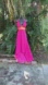 This pretty slip dress begins with double spaghetti straps. There is an orange ruched section under that pink bus line. The dress falls in gentle folds to an asymmetric skirt that is higher in the front the dress is lined too about that front length with the back remaining sheer and bottom. In excellent condition new with tags