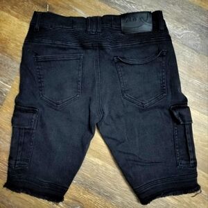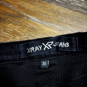 Black denim shorts by Xray, featuring ribbed detailing and frayed hems. New condition.