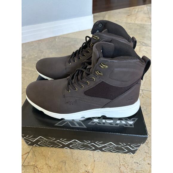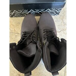 Worn twice. Excellent condition. Very nice lightweight mocha color shoe boot with lace up and hook closure. No wear on the bottom. Box included.