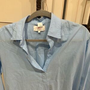 The Blayke dress by Xirena is made of 100% cotton and comes in the color Blue. Blayke has a tunic style and features a blouse collar, pockets in the side seam and a rounded hem with slits. Excellent condition