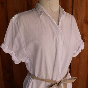 Perfect for summer! Lightweight and airy, comfortable yet chic. Buttons all the way down, belt tie at waist. Sleeves are cuffed, slit up the side to the knee. Perfect condition, no flaws! Worn once then cleaned. Sizing states extra small, although I wear S/M and fits me well.