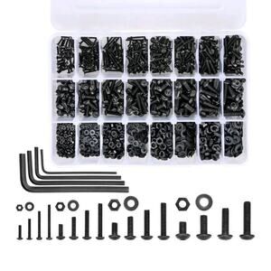 Xrfoiniu 1500 Pcs Metric Fastener Kit Bolts, Nuts & Washers. 12.9 Grade Alloy, Black Zinc. for Home Repair & DIY. Includes M2-M4 Screw Sets, Machine Screws, Set Bolts. Comes with 4 Hex Wrenches.
