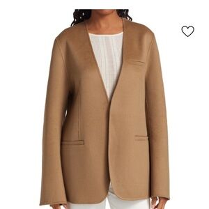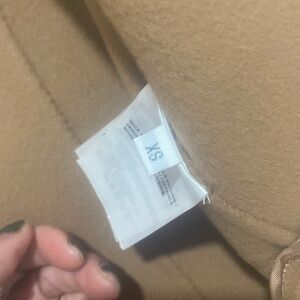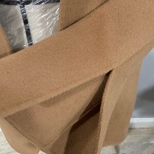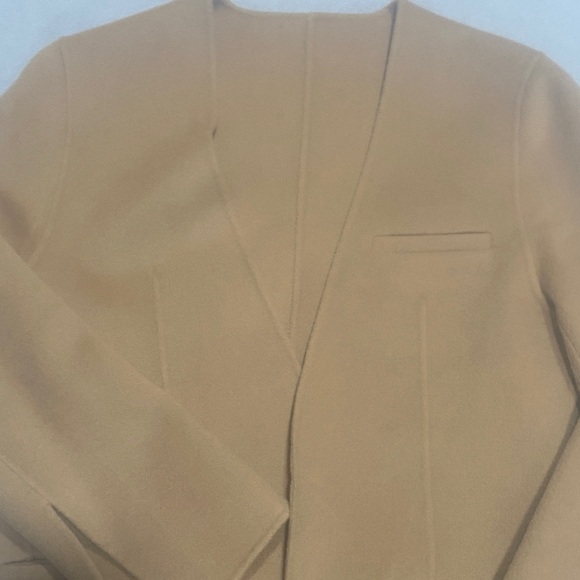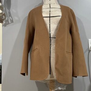 Elevate your style with this elegant tan wool jacket. Perfect for any occasion, this jacket offers both comfort and sophistication.