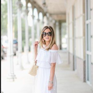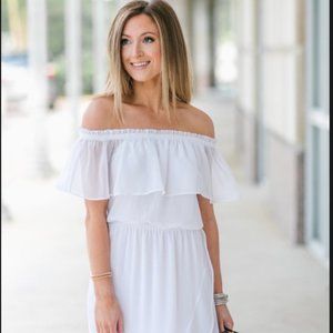 Express Off-the-Shoulder White Lace Maxi Dress Large white