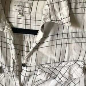 White and black grid button up blouse with pocket detail. Size xs. No flaws.