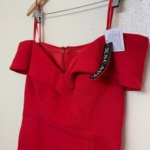 Xscape 1667X Structured Off Shoulder Ruffle Midi Dress Size Large 14 Red $239