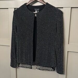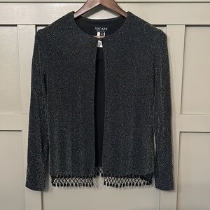 Xscape Beaded Formal Jacket Black Metallic Single Button Size Small
