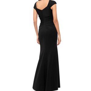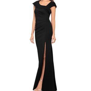 Xscape Black Asymmetric Neck Scuba Trumpet Gown