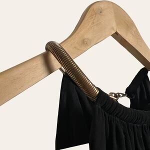 A shiny golden chain suspends the blousey bodice of this comfortable, enchanting evening gown. Accordion pleats throughout enhance the drape, flutter and flattering cut.