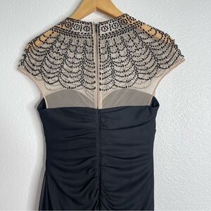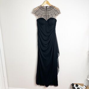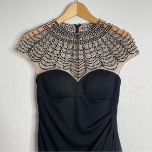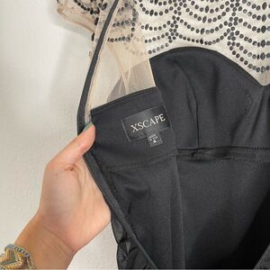 Xscape Black Dress Beaded Illusion Mesh & Jersey Gown Size 4