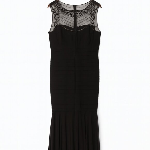 Xscape Black Illusion Beaded Neckline Evening Gown - Size 22W
