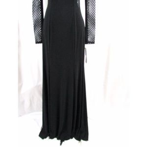 Xscape Black Mesh Cutout Long Sleeve Gown