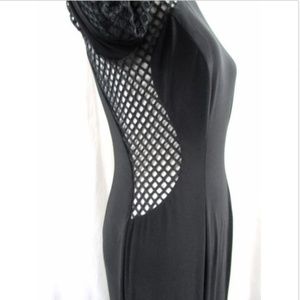 Xscape Mesh Cutout Long Sleeve Black Gown