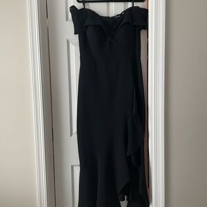 Xscape Black Off-Shoulder High-Low Ruffle Dress