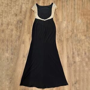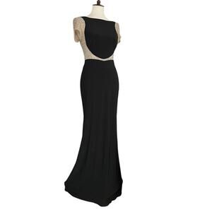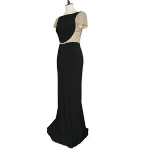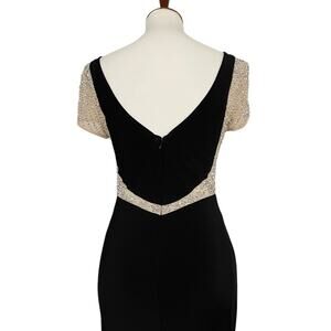 Xscape Black Short Sleeve Beaded Illusion Mesh & Jersey Gown Size 2 Cocktail