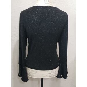 Xscape Black Beaded Deep V Neck Bell Flare Long Sleeve Blouse. Excellent preloved condition.