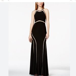 Xscape Black fit & flare prom evening party dress with mesh cutouts Size 6