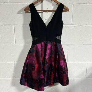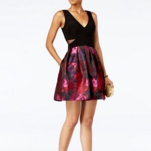 Xscape Black|Red|Pink|Navy Metallic Floral Print Cut Out Pleated Dress Size 2P