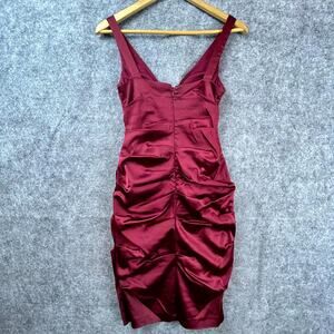Xscape By Joanna Chen Dress Womens 4 Red Ruched Satin Classic NYE Cocktail USA