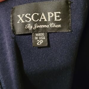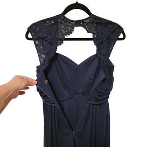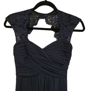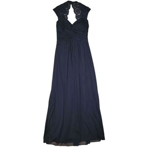 Xscape By Joanna Chen Lace Cap Sleeve Key Hole Open Back Blue 2 Petite Empire