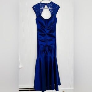 Xscape Cap-Sleeve Lace Ruched Gown Dress Event Evening Royal Blue Women’s Size 8
