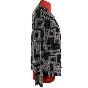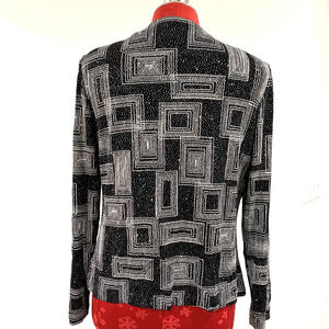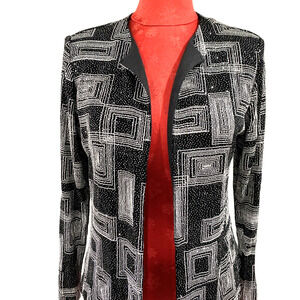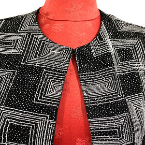 Xscape Cocktail Jacket cropped crew black stretch silver metallic details size S