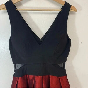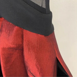 Xscape Dress 4 Flare Shimmer Red Black Pleats Mesh Cut Out Pockets Party Sexy