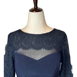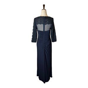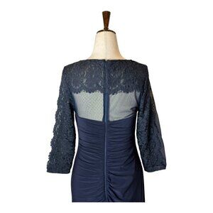 Xscape Navy Blue Ruched Long Lace Sleeve Gown Cocktail Dress Women 10 Petite