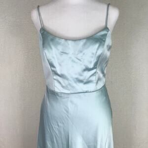 Xscape Dress Women 4 Blue Satin Midi Handkerchief Asymmetric Party Cocktail READ