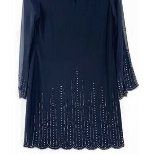 Xscape Evening Dress Women's 6 Blue With Silver Accent Mesh Sleeves Knee Length