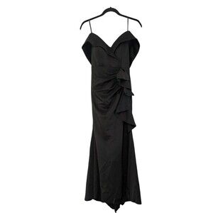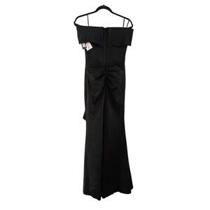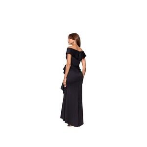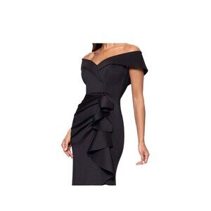 The Xscape Evenings Long Off the Shoulder Scuba Crepe Dress in black, size 4P, is a stylish and versatile option for any occasion. Made from a blend of polyester and spandex, this sleeveless dress features an off-the-shoulder neckline and a flattering zipper closure. The long length and ball gown style make it perfect for parties or casual events, while the machine washable material ensures easy care. Designed by the brand Xscape, this dress exudes a designer look with its solid color, collarless design, and accents of zipper details. Made in the United States, this dress is a chic addition to any woman's wardrobe.