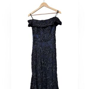 Xscape Evenings Off the Shoulder Sequin Lace Trumpet Gown