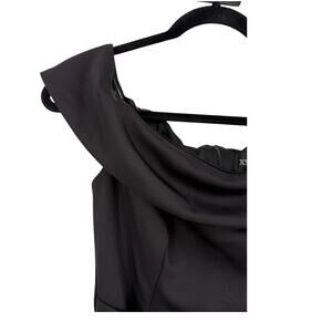 Xscape Evenings Ruffle Off the Shoulder Scuba Knit Dress black size 8 F1763