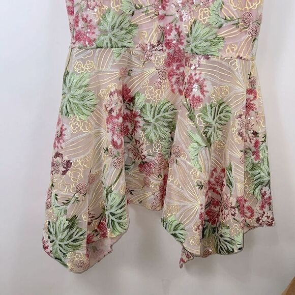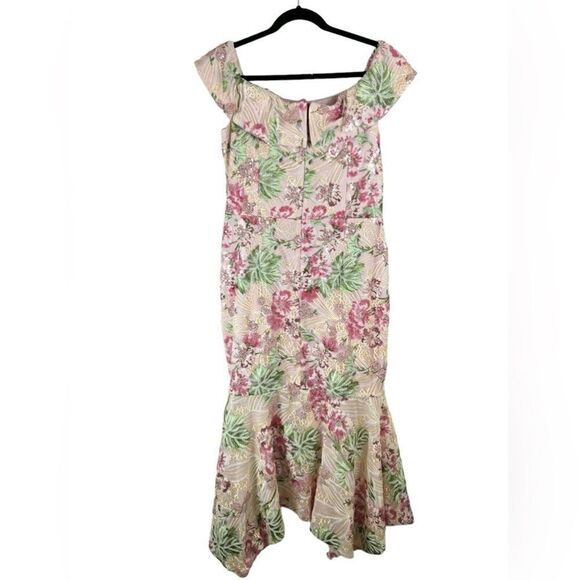 Xscape Floral Off-Shoulder Midi Dress - Pink and Green Size 16