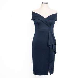 Xscape. Jessie Short Scuba Off The Shoulder Ruffle Dress.
