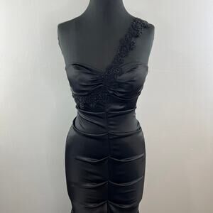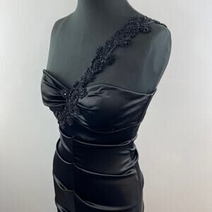 Xscape Joanna Chen Black Beaded Asymmetric One Shoulder Mermaid Evening Gown 6