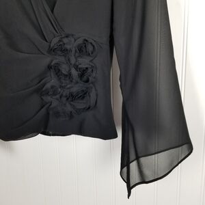 Xscape Joanna Chen Corset Top Sheer Sleeves Boning Black Size 4 Petite Mobwife