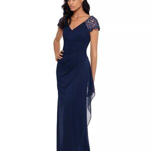 Xscape Lace-Sleeve Chiffon Gown – Navy Blue | NWT | Size 12