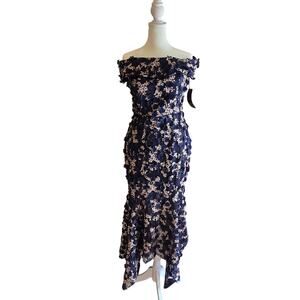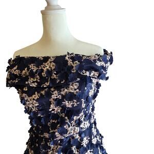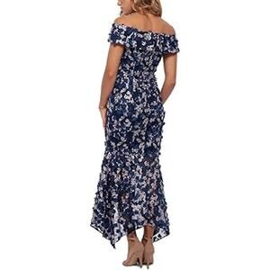 Xscape Midi Raised Flower Off-The-Shoulder Flounce Gown Evening Dress NWT 4