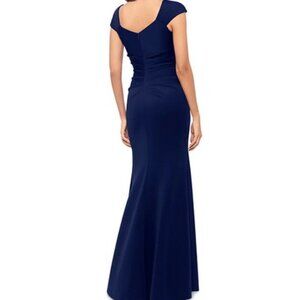 Xscape Midnight Blue Asymmetric-Neck Side-Slit Scuba Gown