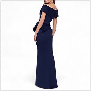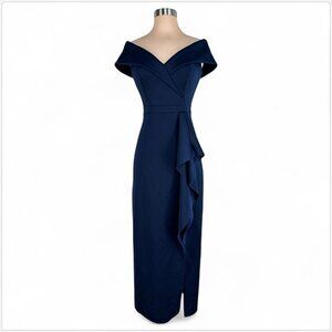 Xscape Midnight Patti Long Off the Shoulder Scuba Crepe Dress Maxi Gown New 6