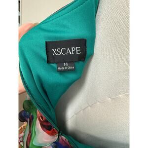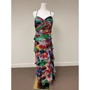Xscape Multi-Printed Chiffon Sleeveless Tiered Dress Sweetheart Neck Size 14