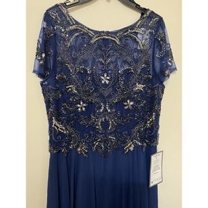 Xscape Navy Blue Embellished Chiffon Ball Gown Dress Wedding Mother Size 14 NWT