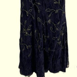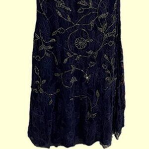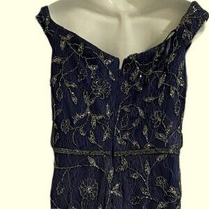 Xscape Navy Blue Floral Beaded Lace Column Gown